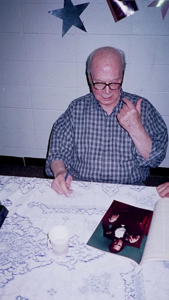 On May 19th, 2001 the Peoria Public Library held a Living Legend Reception for Philip José Farmer in celebration of his having been awarded the Grand Master Award at the Nebula Award Banquet on Saturday April 28, 2001, The award was presented to him by Harlan Ellison. Mike Croteau had helped to arrange it so that many of us serious-to-rabid collectors had all of the information necessary to make plans to attend not only the reception but also to have dinner with Phil and his wife Bette later that evening.