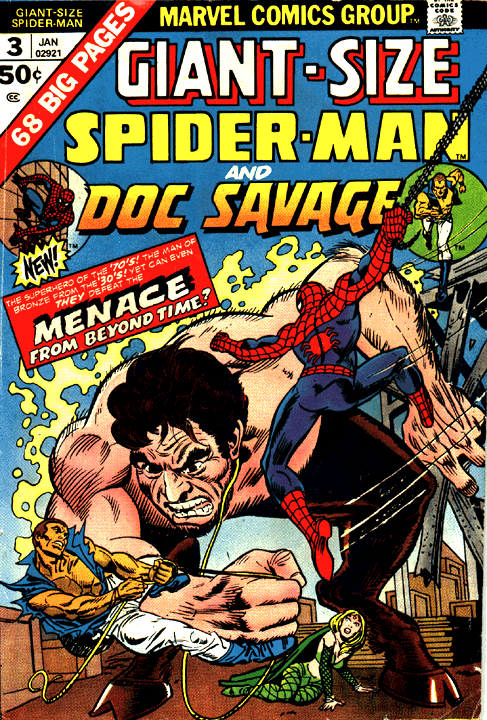 Doc Savage, his cousin Pat Savage, and one of his five assistants, Monk